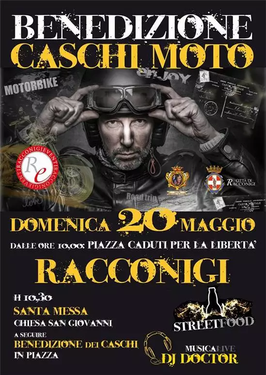 Per la prima volta a Racconigi in collaborazione con l'amministrazione comunale, Racconigieventi vi aspetta in Piazza Caduti per la Libertà per la "BENEDIZIONE DEI CASCHI MOTO"