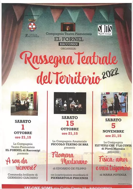 Dettaglio RASSEGNA TEATRALE DEL TERRITORIOSabato 15 ottobre ore 21.15 salone SomsLa compagnia amatoriale Piccolo Teatro di Bra presenta "Filomena Marturano"di Edoardo De Filippocon la partecipazione straordinaria di Pierbartolo Piacenza