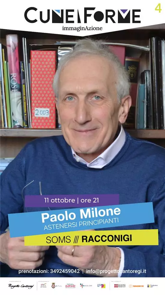 Dettaglio Mercoledì 11 ottobre invece, alle ore 21 alla Soms sarà presente lo psichiatra e autore de "Astenersi principianti"Paolo Miloneche con estrema delicatezza e poesia sa trattare anche una delle materie più incandescenti, come la morte.