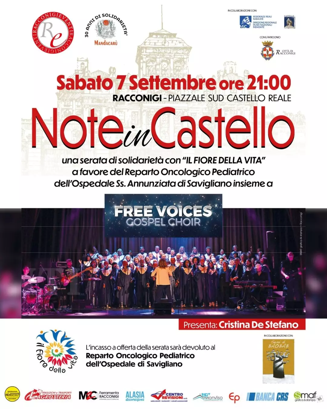 Sabato 7 settembre alle 21:00 torna Note in Castello, una serata di solidarietà con IL FIORE DELLA VITA e le straordinarie voci del Free Voice Gospel Choir.