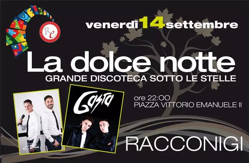 Dettaglio LA DOLCE NOTTEGrande discoteca sotto le stelle Piazza Vittorio Emanuele II ore 22con Marco Ellep33 e Gasta