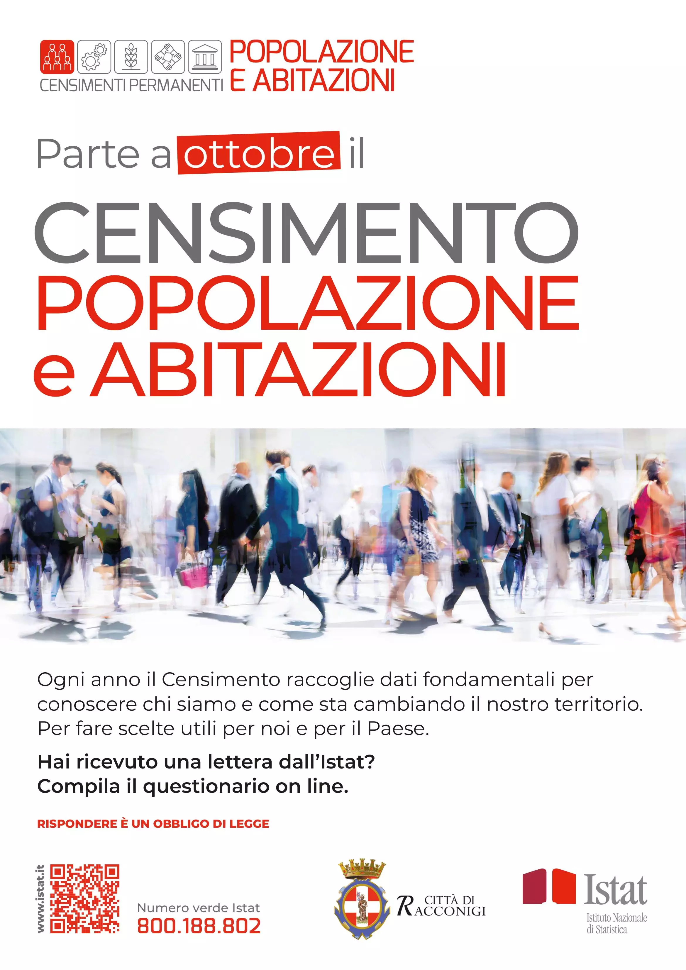 Fino al 9 dicembre 2024 le famiglie di Racconigi selezionate per partecipare al Censimento Permanente della Popolazione e delle Abitazioni potranno compilare autonomamente il questionario online. Questo importante appuntamento statistico, avviato il 7 ottobre, coinvolge 941 nuclei familiari a Racconigi ed è promosso dall’ISTAT per raccogliere dati essenziali sulle caratteristiche socioeconomiche della popolazione.