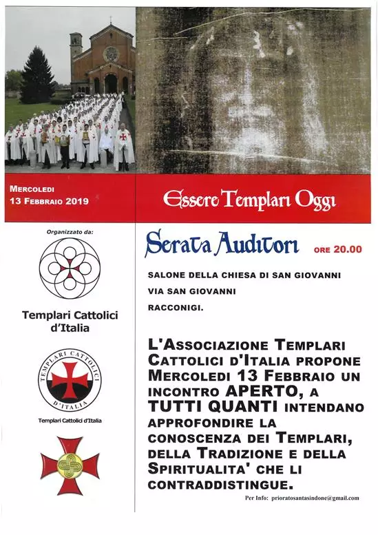 L'associazione Templari Cattolici d'Italia propone Mercoledì 13 febbraio un incontro aperto, a tutti quanti intendano approfondire la conoscenza dei Templari, della tradizione e della spiritualità che li contraddistingue