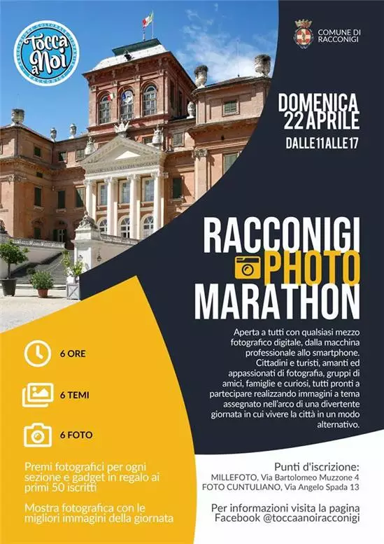 La Racconigi Photo Marathon è un evento culturale che coniuga la passione per la fotografia e la promozione del territorio. È una giornata dedicata alla fotografia e non c’è bisogno di correre!