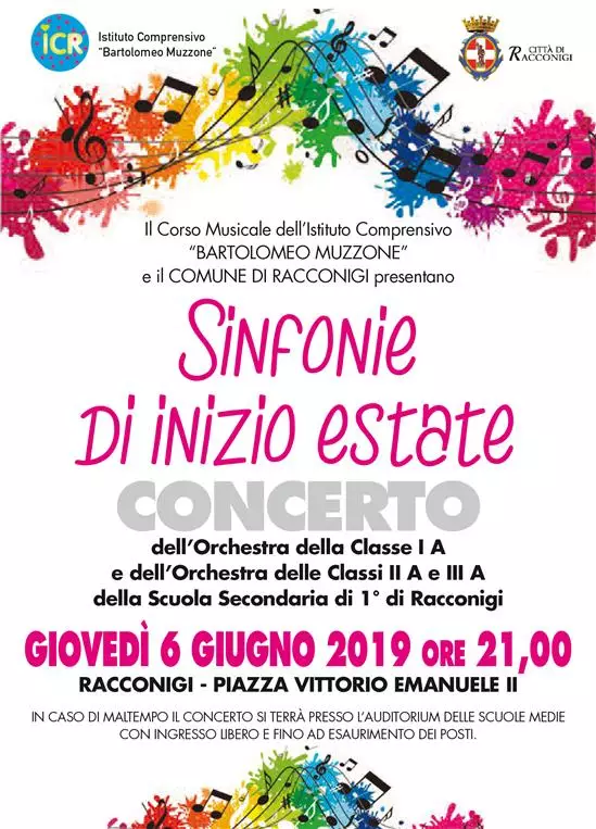 In caso di maltempo il concerto si terrà presso l'Auditorium delle scuola medie con ingresso libero fino a esaurimento dei posti