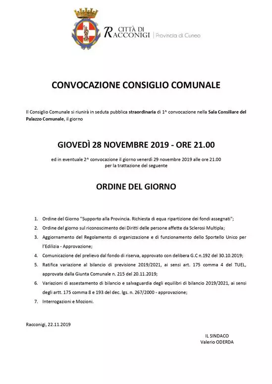 CONVOCAZIONE CONSIGLIO COMUNALE