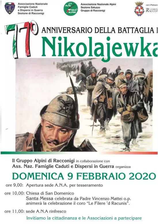 Il Gruppo Alpini di Racconigi in collaborazione con Ass. Naz. Famiglie Caduti e Dispersi in Guerra organizza