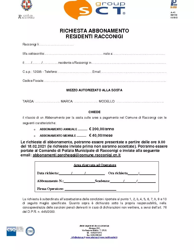 Modulo di richiesta abbonamento residenti a Racconigi.