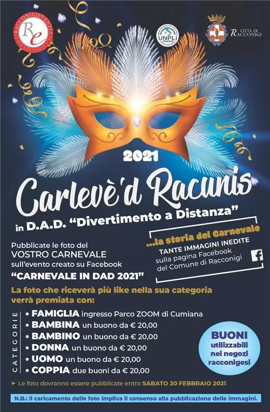 Pubblicate le foto del VOSTRO CARNEVALE sull'evento creato su facebook "CARNEVALE IN DAD 2021"