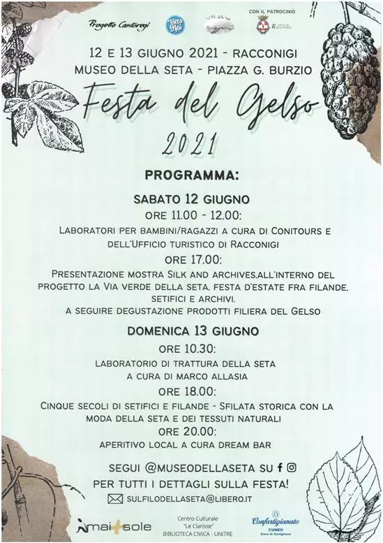 Festa del Gelso 202112 e 13 giugno al Museo della seta in Piazza G. Burzio, a Racconigi