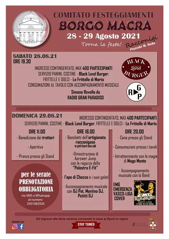 Sabato 28 e Domenica 29 Agosto 2021 torna la Festa del Borgo Macra