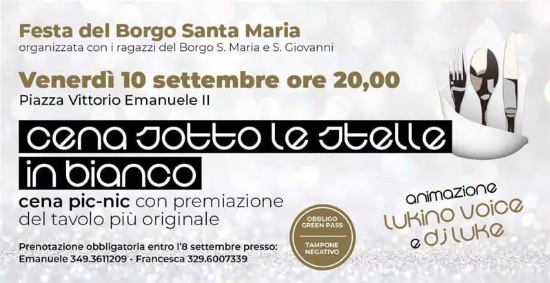 Prenotazione obbligatoria entro l'8 settembre presso: