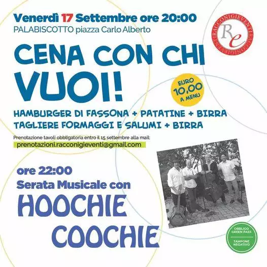 CENA CON CHI VUOI!Venerdì 17 settembre alle ore 20.00 al Palabiscotto in piazza Carlo Alberto