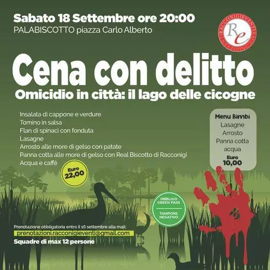 CENA CON DELITTO - Omicidio in città: il lago delle cicogneSabato 18 settembre alle ore 20.00 al Palabiscotto in piazza Carlo Alberto