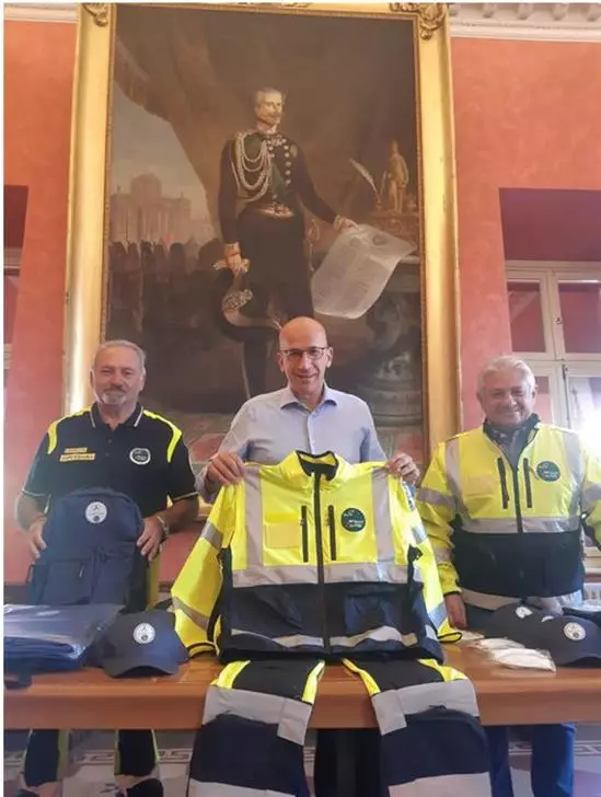 Nella mattinata di mercoledì 22 settembre nella sala Consiliare del Municipio, il Sindaco Valerio Oderda ed il Vicesindaco Tribaudino Alessandro hanno consegnato al Caposquadra della Protezione Civile ANA di Racconigi sig. Castucci Mario, le nuove divise per i volontari, composte dal giubbotto e pantaloni da intervento, zainetto, cappellino e mascherine.