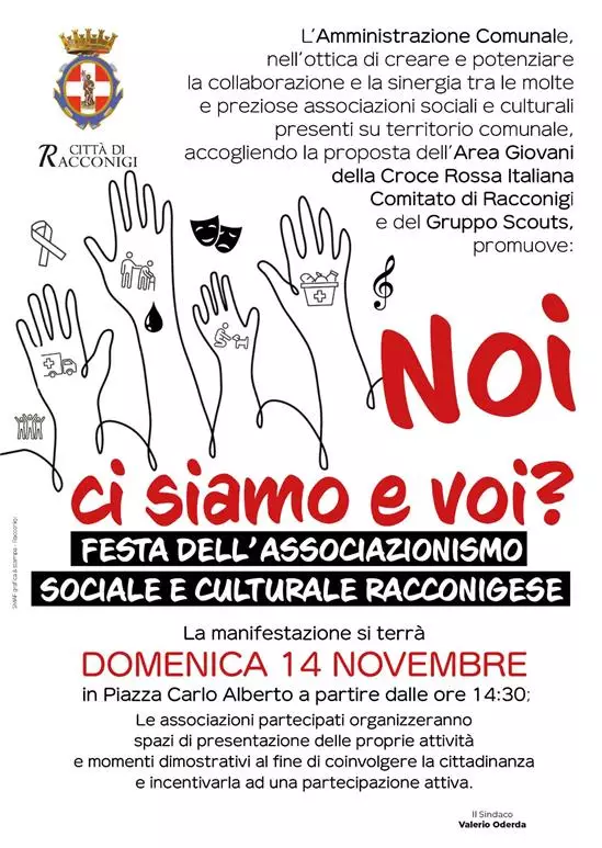 L'Amministrazione Comunale, nell'ottica di creare e potenziare la collaborazione e la sinergia tra le molte e preziose associazioni sociali e culturali presenti sul territorio comunale, accogliendo la proposta dell'Area Giovani della Croce Rossa Italiana Comitato di Racconigi e del Gruppo Scouts, promuove:
