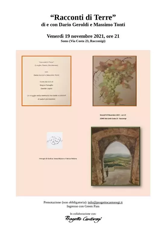 Prenotazione (non obbligatoria): info@progettocantoregi.it
