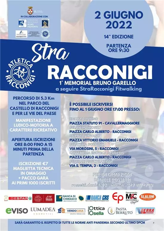 Percorso di 5,3 chilometri nel Parco del Castello di Racconigi e per le vie del paese.