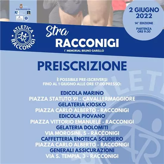 Apertura iscrizioni ore 8 fino a 15 minuti prima della partenza