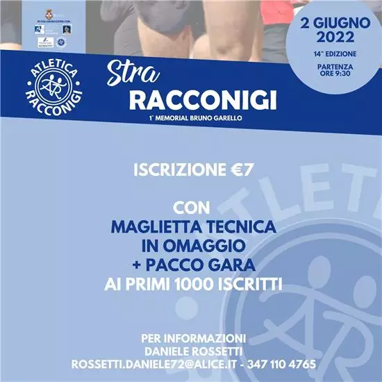 Iscrizione € 7 maglietta tecnica in omaggio + pacco gara ai primi 1000 iscritti