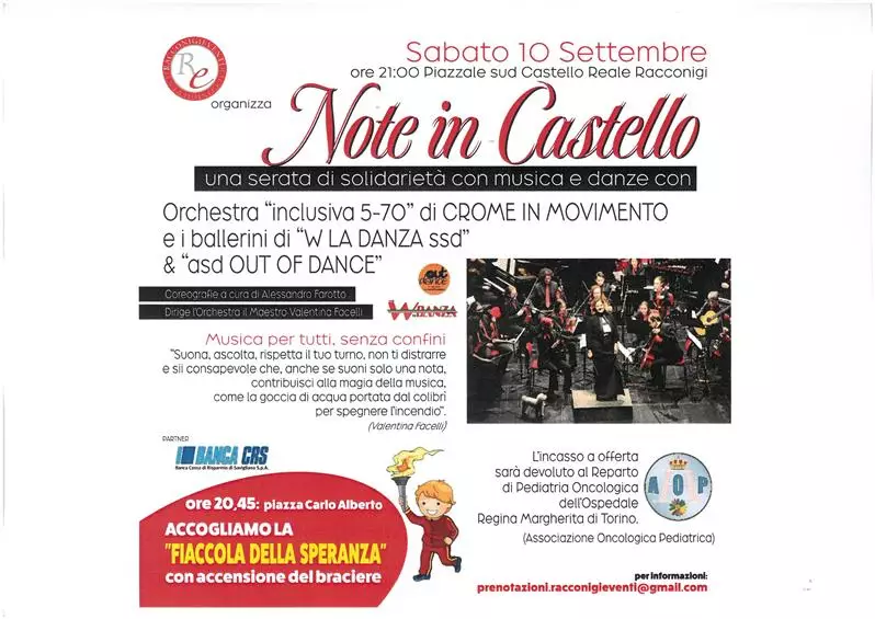 L'incasso a offerta sarà devoluto al reparto di terapia Oncologica dell'ospedale Regina Margherita di Torino.