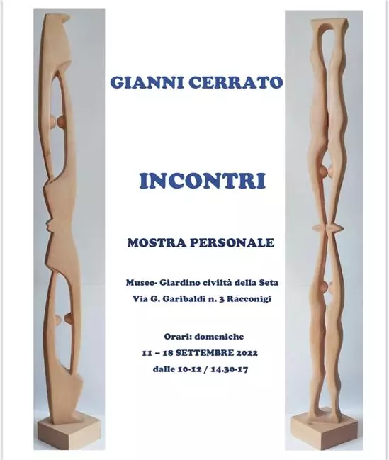 Descrizione Mostra personale GIOVANNI CERRATOMuseo Giardino civiltà della SetaDomenica 11 e 18 settembre Orario mostra:dalle ore 10 alle ore 12 e dalle ore 14.30 alle ore 17