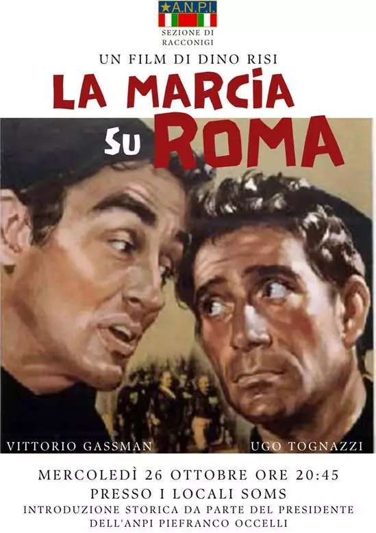 L' inizio della dittatura è legato ad un fatto violento ed eversivo messo in atto dai fascisti il 28 ottobre del1922: la marcia su Roma, che però, contrariamente a quanto qualcuno pensa ebbe ben poco di glorioso. L'ANPI di Racconigi vuol ricordare quell' evento mediante la proiezione di un bellissimo film che ne mette in luce tutti gli aspetti contraddittori quando non grotteschi.