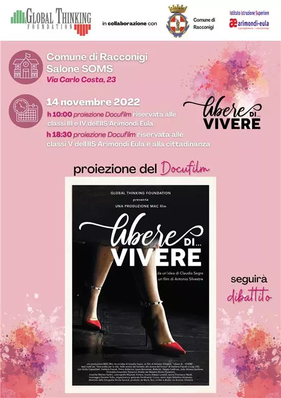 Lunedì 14 novembre andrà in scena alla Soms di Racconigi il docufilm “Libere di...Vivere”, che ha l’obiettivo di sensibilizzare sul tema della violenza economica di genere e le sue conseguenze: è prevista una prima proiezione alle ore 10, riservata alle classi terze e quarte dell’Istituto Arimondi Eula, e una alle ore 18:30 aperta a tutti i cittadini.
