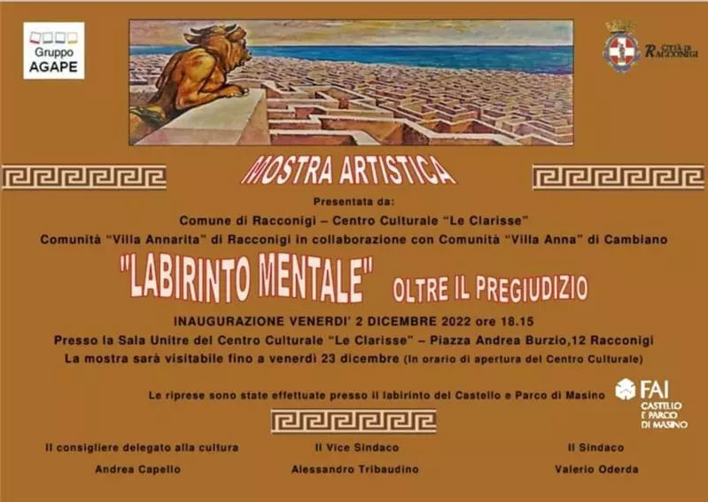 Da sabato 3 dicembre fino a venerdì 23 dicembre, nella sala UniTre del Centro Culturale Le Clarisse di Racconigi, sarà possibile visitare la mostra artistica ʺLabirinto mentale – oltre il pregiudizio“, organizzata in occasione della Giornata mondiale delle persone con disabilità.