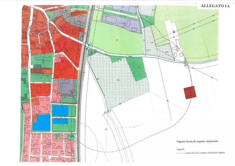 Le modifiche all’attuale fascia saranno le seguenti: riduzione sul lato nord-est del cimitero, lungo i tracciati di parte della strada comunale della Tagliata e parte di via dei Sospiri; riduzione sul lato nord del cimitero, oltre l’esistente strada della Tagliata verso la zona artigianale, in modo da permettere limitati ampliamenti delle esistenti attività; riduzione sul lato ovest-nord del Cimitero, lungo il tracciato dell’esistente linea ferroviaria, ad esclusione di una parte che andrebbe oltre il limite minimo non riducibile; mantenimento sui lati sud ed ovest del cimitero dell’attuale ampiezza della fascia cimiteriale (di 200 metri) verso le aree agricole, ad esclusione della Cascina Fornace, dove si propone di spostare la fascia sul perimetro dell’area residenziale.