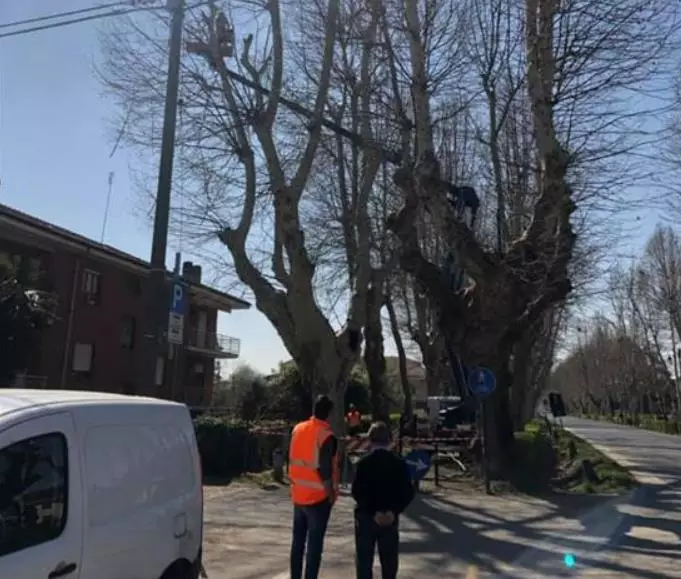 In foto: Manutenzione del Viale di platani a doppio filare di Corso Principe di Piemonte nel 2019.