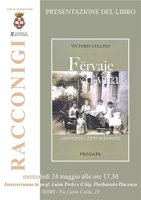 Descrizione Presentazione del libro Vittorio Gullino "Fervaje 'd vita" Mercoledì 24 maggio alle ore 17.30 presso Salone SomsInterverranno la prof. Luisa Perlo e il Sig. Pierbartolo Piacenza