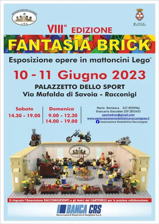 Descrizione Fantasia Brick esposizione opere in mattoncini Lego10 - 11 giugnoPalazzetto dello sportVia Mafalda di Savoia Orario mostra:Sabato 14.30 - 19.00Domenica 9 - 12.30 e 14 - 19