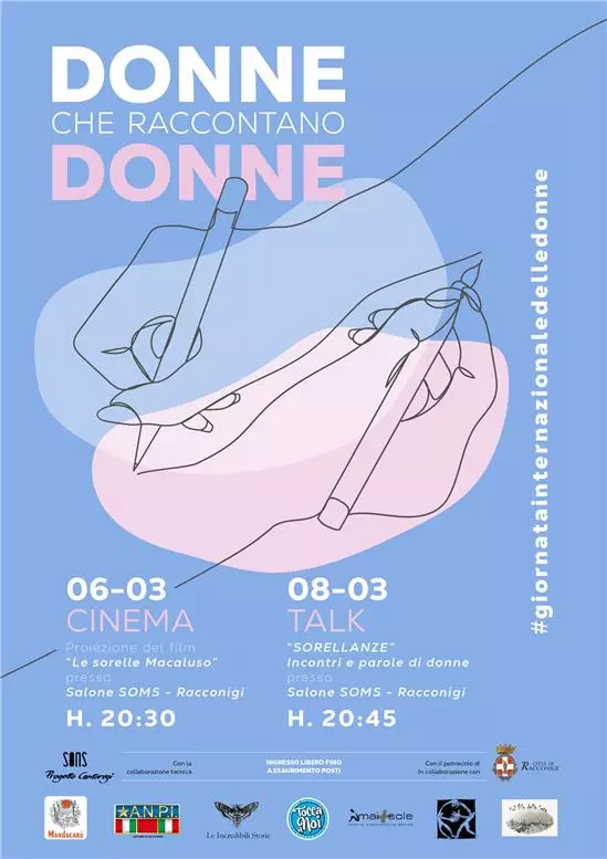 Il progetto, dal titolo "Donne che raccontano donne", si articolerà in due serate. La prima, mercoledì 6 marzo alle ore 20:30, vedrà la proiezione cinematografica di "Le sorelle Macaluso", film diretto da Emma Dante e vincitore del Nastro d’Argento nel 2021. La seconda, venerdì 8 marzo alle ore 20:45, sarà un talk coordinato da Serena Fumero de "Le Incredibili Storie", durante il quale le diverse associazioni partecipanti tra cui Tocca A Noi Racconigi, Mai+Sole, Mandacarù, ANPI, Fondo di Solidarietà e Sul Filo della Seta si alterneranno sul palco per raccontare storie di donne: storie di riscatto, di fatica, di silenzio, di gioia e di dolore. Storie differenti per riflettere e in cui potersi ritrovare.