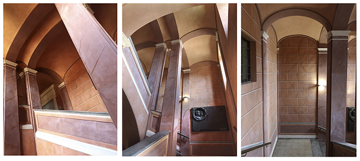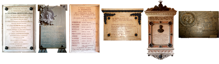 Il percorso del notevole scalone è scandito dalla presenza di 6 lapidi storiche, poste tra il 1859 e il 1928, dedicate a fatti e personaggi che hanno “lasciato il segno” nel trascorrere del tempo a Racconigi.